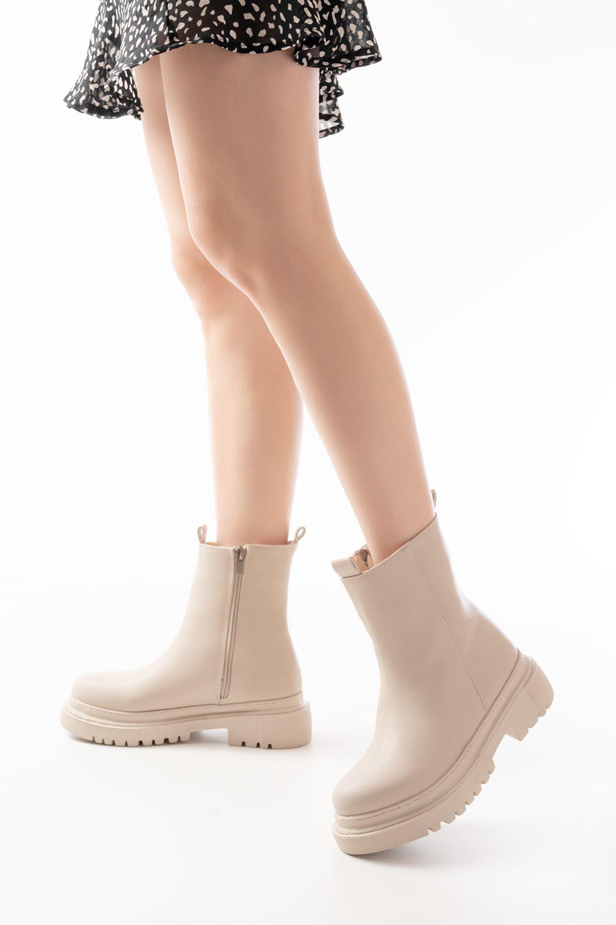 812-2012 Bej Luna Fermuarlı Günlük Kadın Bot