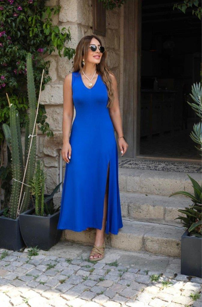 Kadın Askılı V Yakalı Yırtmaçlı Viskon Elbise
