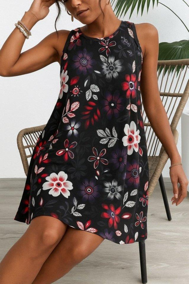 Kadın Askılı Yuvarlak Yaka Desenli A Kesim Süprem Elbise