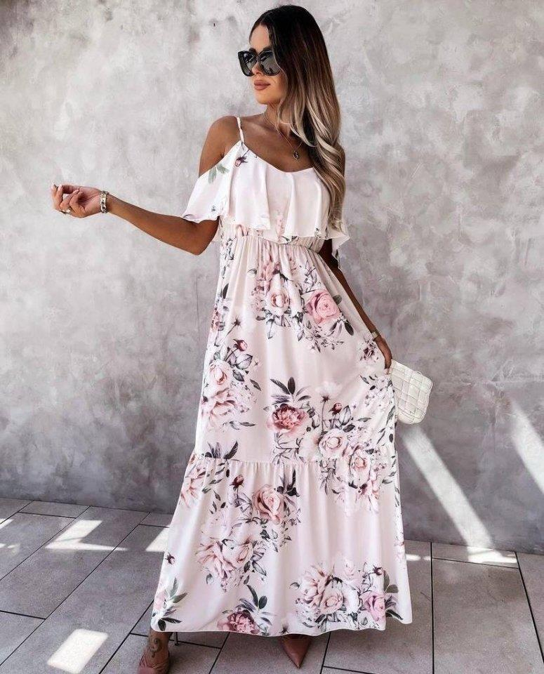 Kadın Gül Desenli Mikro Kumaş Elbise