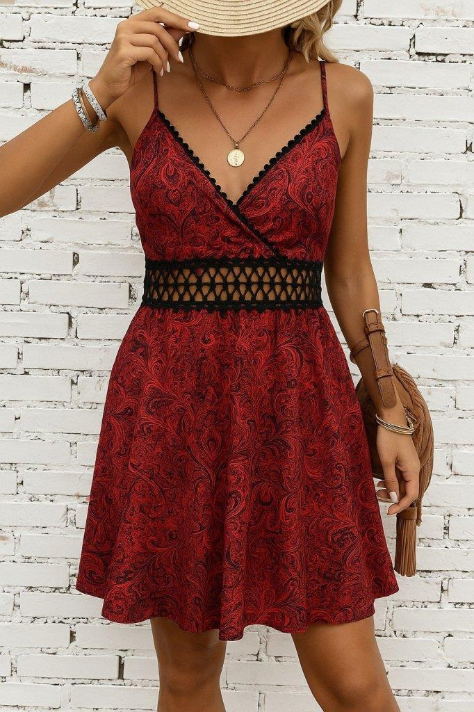 Kadın Ip Askılı Kruvaze Yakalı Desenli Mini Süprem Mini Elbise